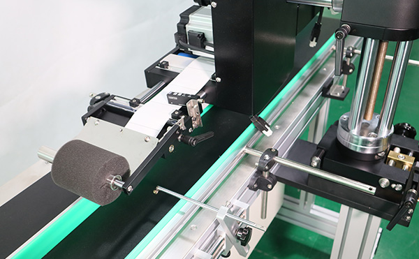 這兩種設備的工作原理大致相同,傳感器檢測到產品經過,傳回信號到貼標控制系統,在適當位置控制系統控制送出標簽并貼附在產品待貼標位置上,產品流經覆標裝置,標簽被覆貼附在產品上,一張標簽的貼附動作完成。基本可分為以下幾步:人工放產品→產品輸送→產品分距→貼標→收集已經貼標的產品。